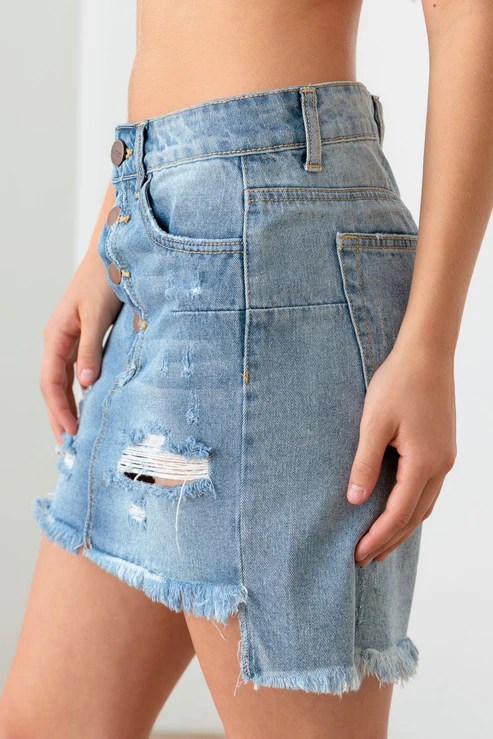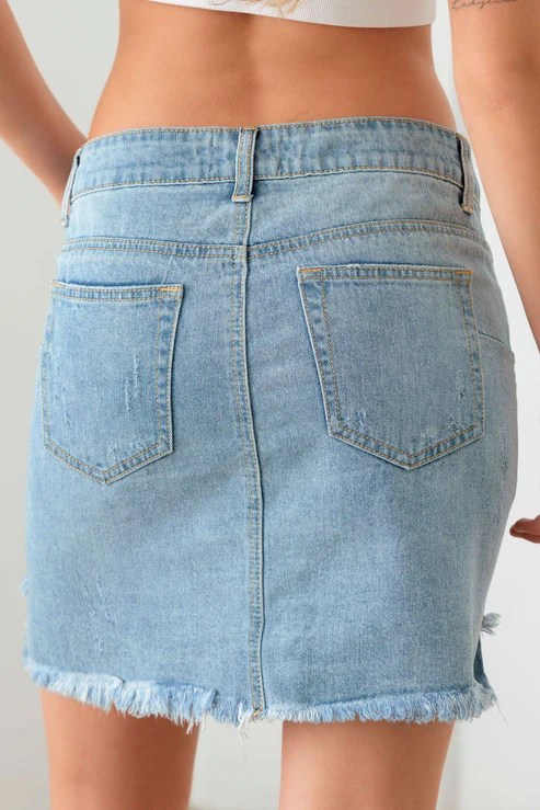 Take Action: Don’t miss out on this must-have piece that effortlessly blends comfort and style. Add the Distressed Button Down Detail Mini Denim Skirt to your cart today and enhance your everyday look with this fashionable and versatile skirt!
